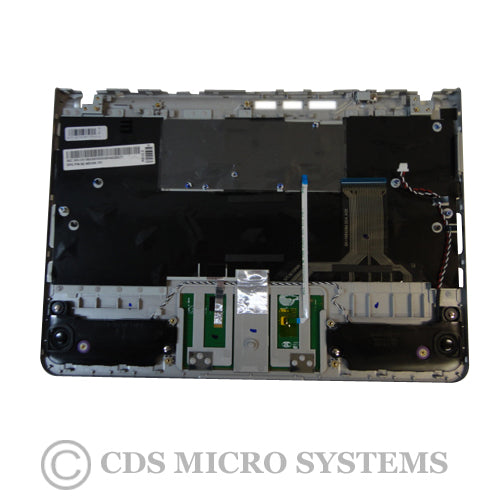 Description: Used Samsung laptop upper case palmrest, keyboard and touchpad. This upper case includes the palmrest, keyboard and touchpad. This original part is silver with black keys. These items are in good condition other than light scratches.